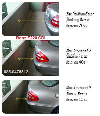 เริ่มที่ระยะ 70ซม เสียงเตือนระยะที่ 2 (ปี๊บถี่ขึ้น) เริ่มที่ระยะ 40ซม เสียงเตือนระยะที่ 3 (ปี๊บยาวต่อเนื่อง) เริ่มที่ระยะ 15ซม